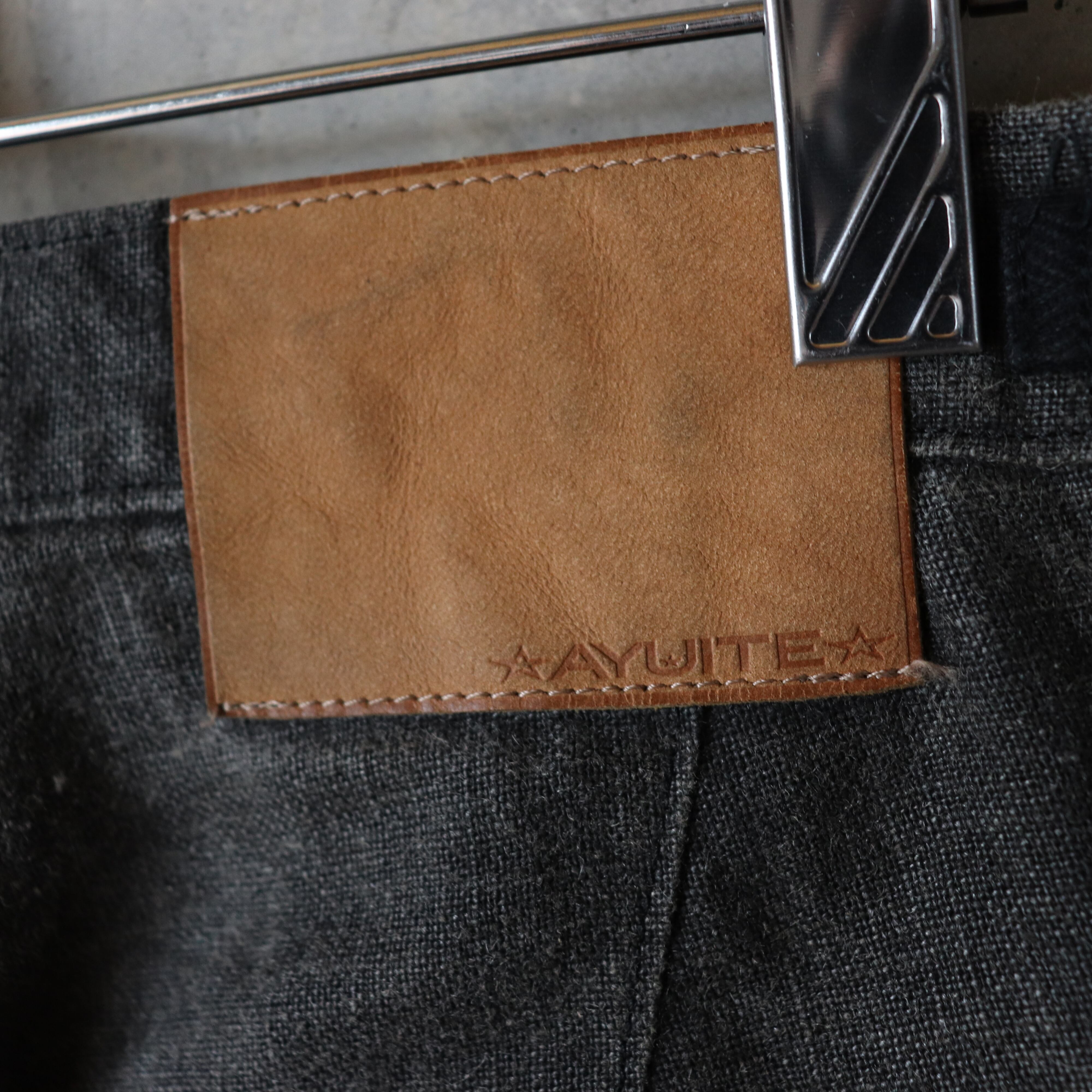ナチュラルな風合いと武骨なディテールが魅力のAYUITEリネンカーゴパンツ。